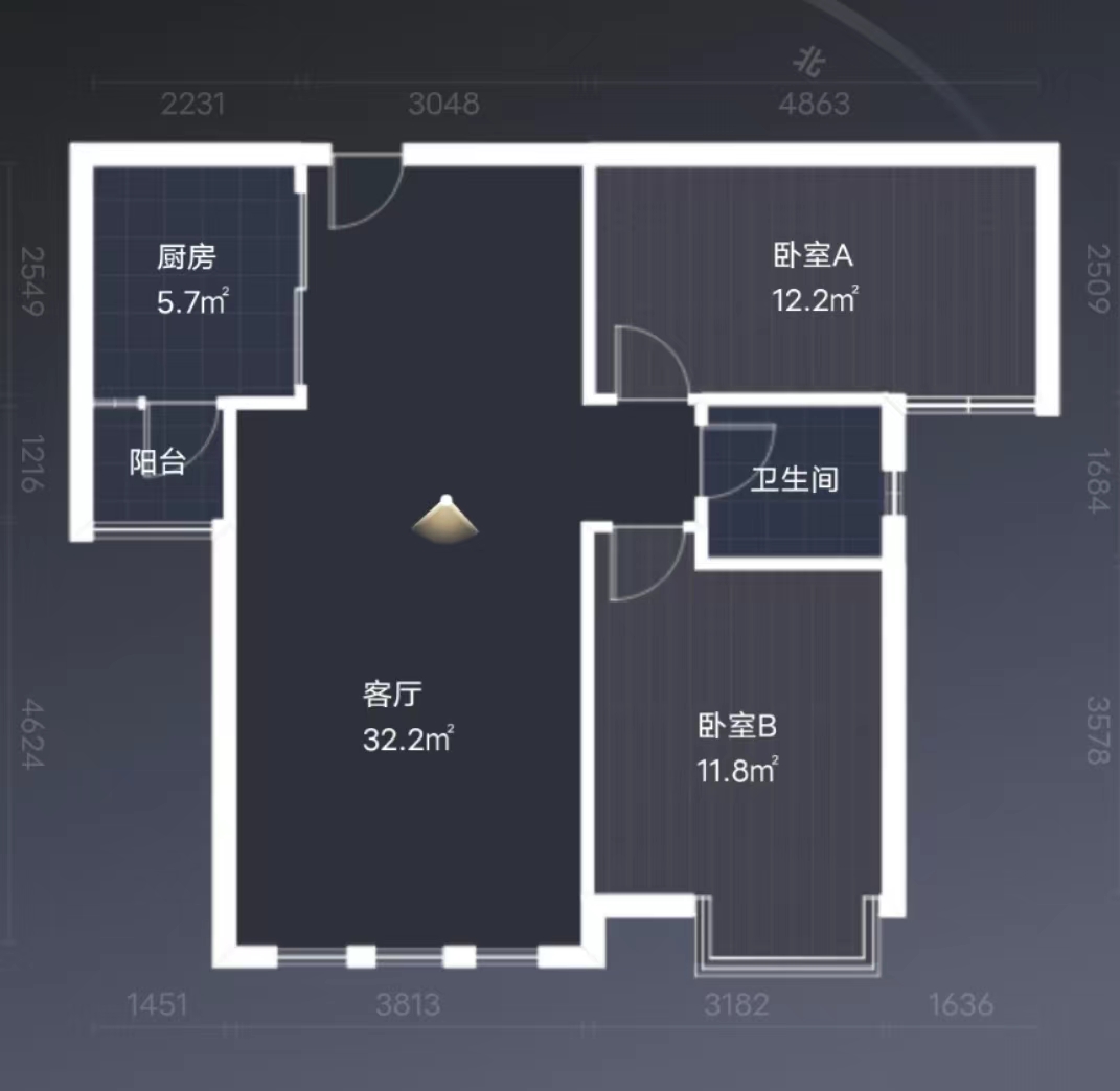 2室2 厅1卫 | 92.3 ㎡