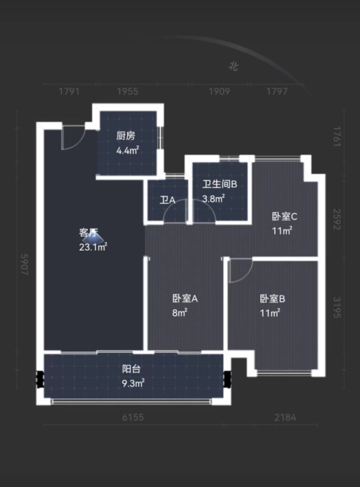 3室2 厅2卫 | 107 ㎡