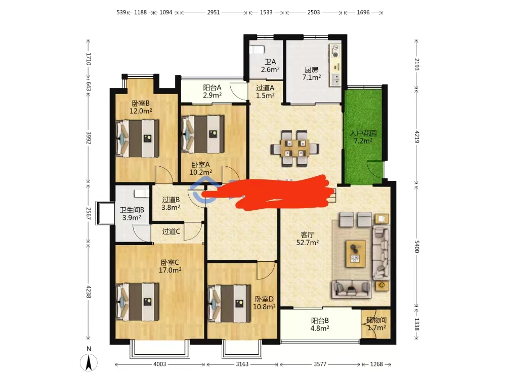 - 户型4室2厅2卫