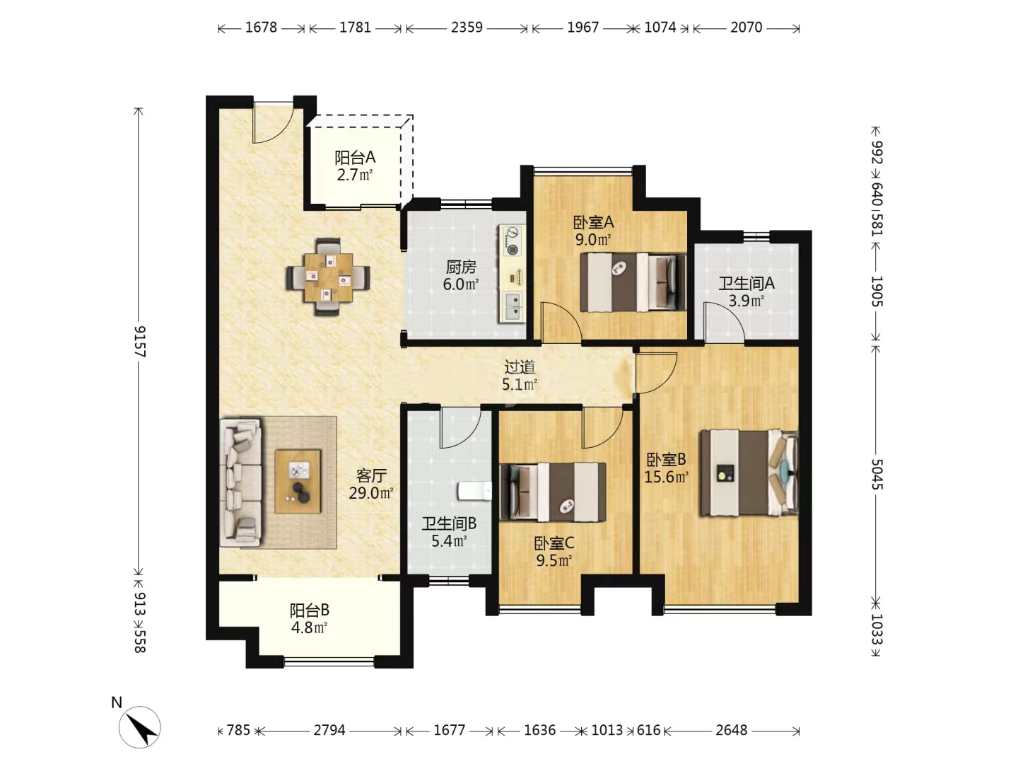 3室2 厅2卫 | 115 ㎡